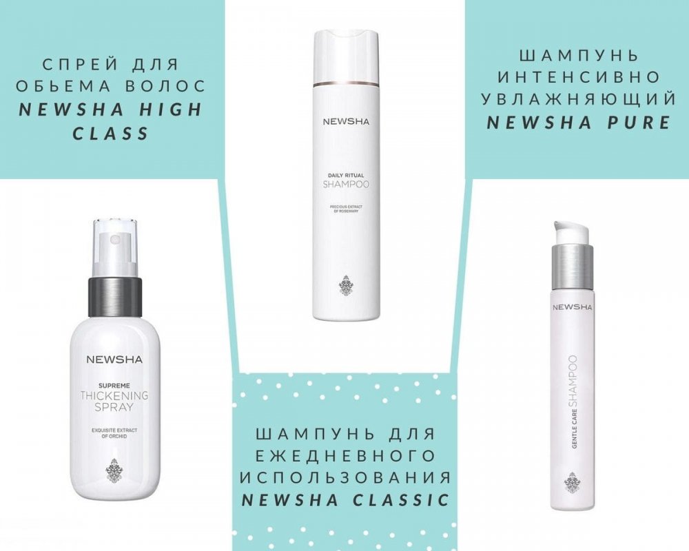 Технологи компанії Newsha не за кількість, а за якість. У цьому і особливість бренду, що маючи дуже лаконічний асортимент, три лінійки продукції CLASSIC, PURE и HIGH CLASS дозволяють завжди підібрати оптимальний догляд або засіб для стайлінгу для будь-якого типу волосся.